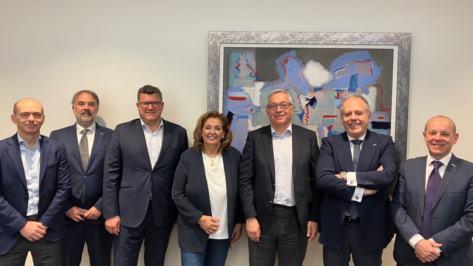 Miguel Pérez Jaime, Director General Comercial de Allianz Seguros, Javier Fernández Agustí, Director de Gestión de Red, y José Ramón Álvarez, Director del Canal Corredor han mantenido un encuentro con Antonio Muñoz, Presidente de Cojebro, Ana Muñoz, Secretaria y responsable de relaciones institucionales, Diego Fernández, Gerente y Roberto del Olmo, Director Comercial de la entidad para alinear las estrategias de colaboración de ambas firmas en este año.